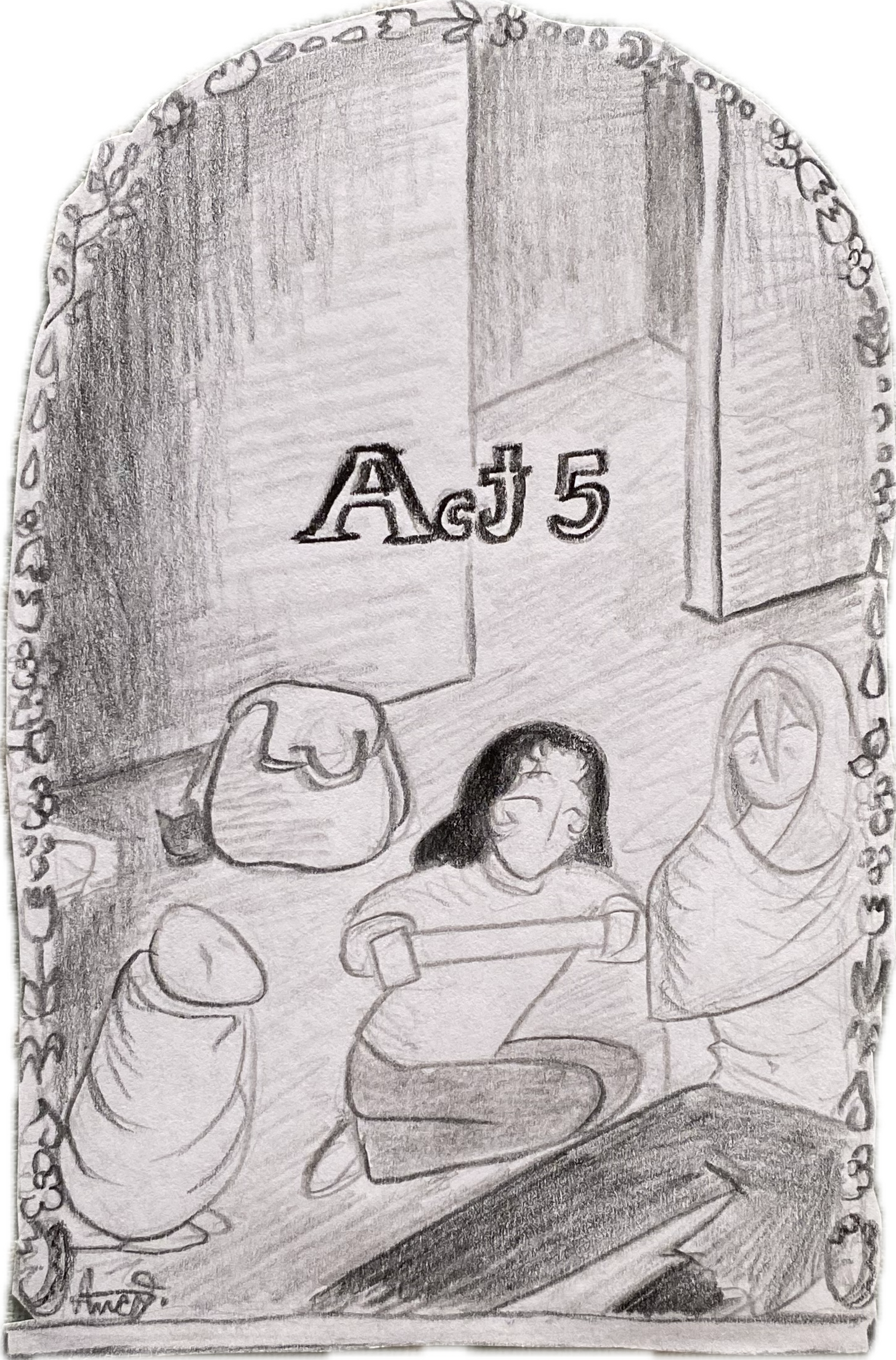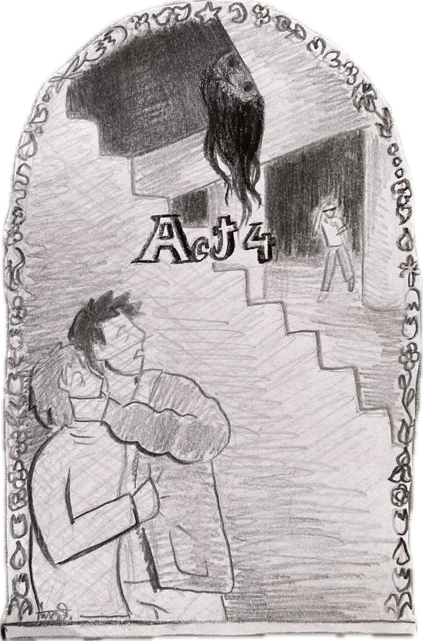 A shuffling can be heard upstairs, interrupting him. It stops as soon as the source of it realises the noise it made. Adrian and Andrei immediately turn to look at the staircase, Andrei moving closer to Adrian.