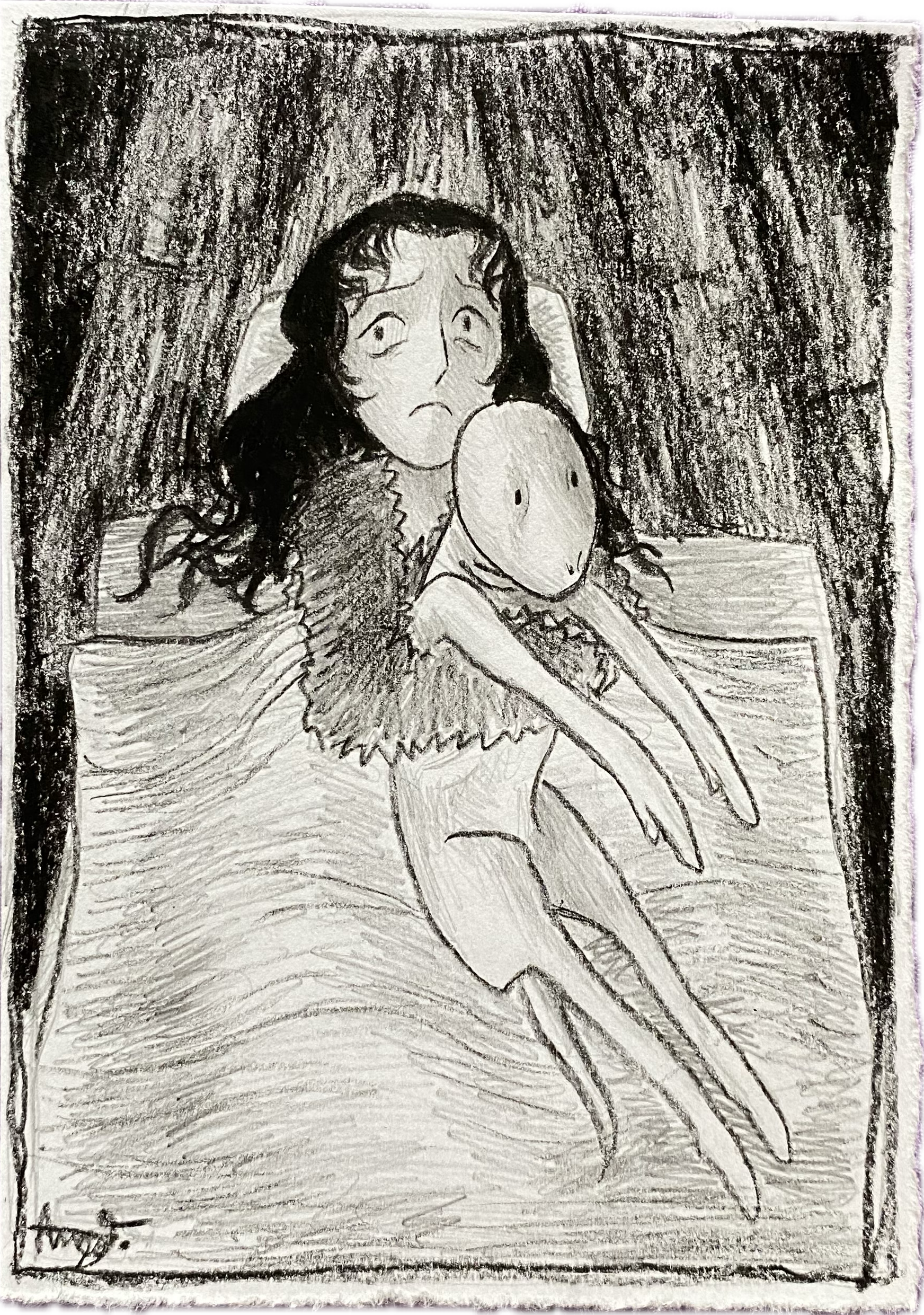 When she tried to go to bed, her mind remembered every scary story and every scary headline she ever heard. Not-humans, thin skin and gaping mouths and black eyes, peeking through the crack of a door, long neck stretching into the room to look at her from above. It was ten times worse in her new house. Until she fell asleep she kept opening her eyes to look either at the windows or the door.