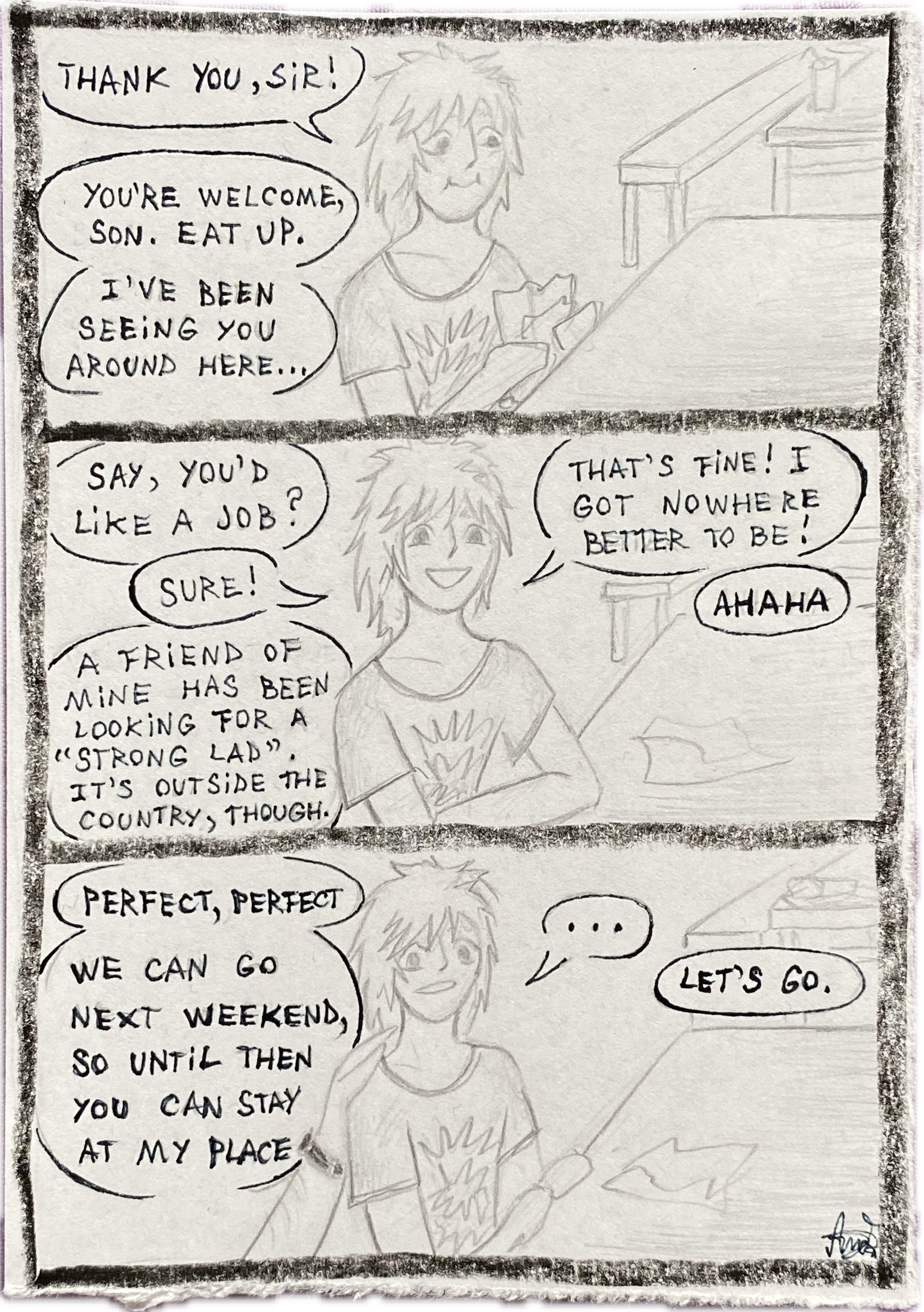 >he's been through some traumatic shit too and he's really shy, but he opens up to us gradually and he's very sweet. Also weird as hell tho