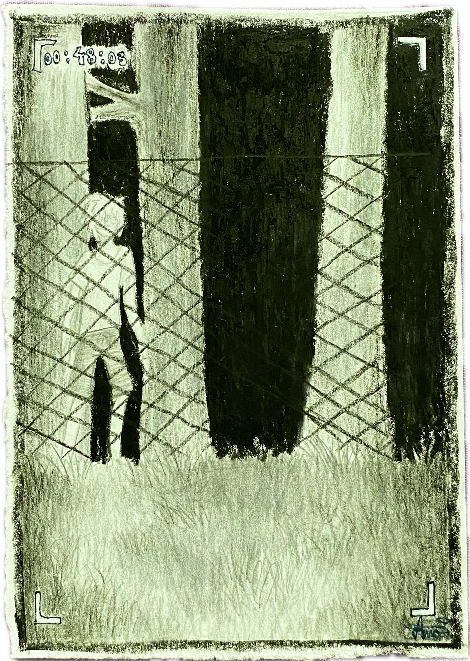 We left and then some hours passed. We could see the sun going down through the windows. And then we saw it. The door to the main bedroom was open and through it we could see a man, a whole person, crawling out from under the bed. I have no idea how he fit under there. He had been hiding in our house while we were in it, while we were SLEEPING in that bed. He looked male, a young man or a teenager maybe. He looked up, saw the camera, and took it off the wall with his bare hands, with this blank expression on his face. The outside camera then captured him going out through the window, hopping the fence, and walking into the woods nearby.
