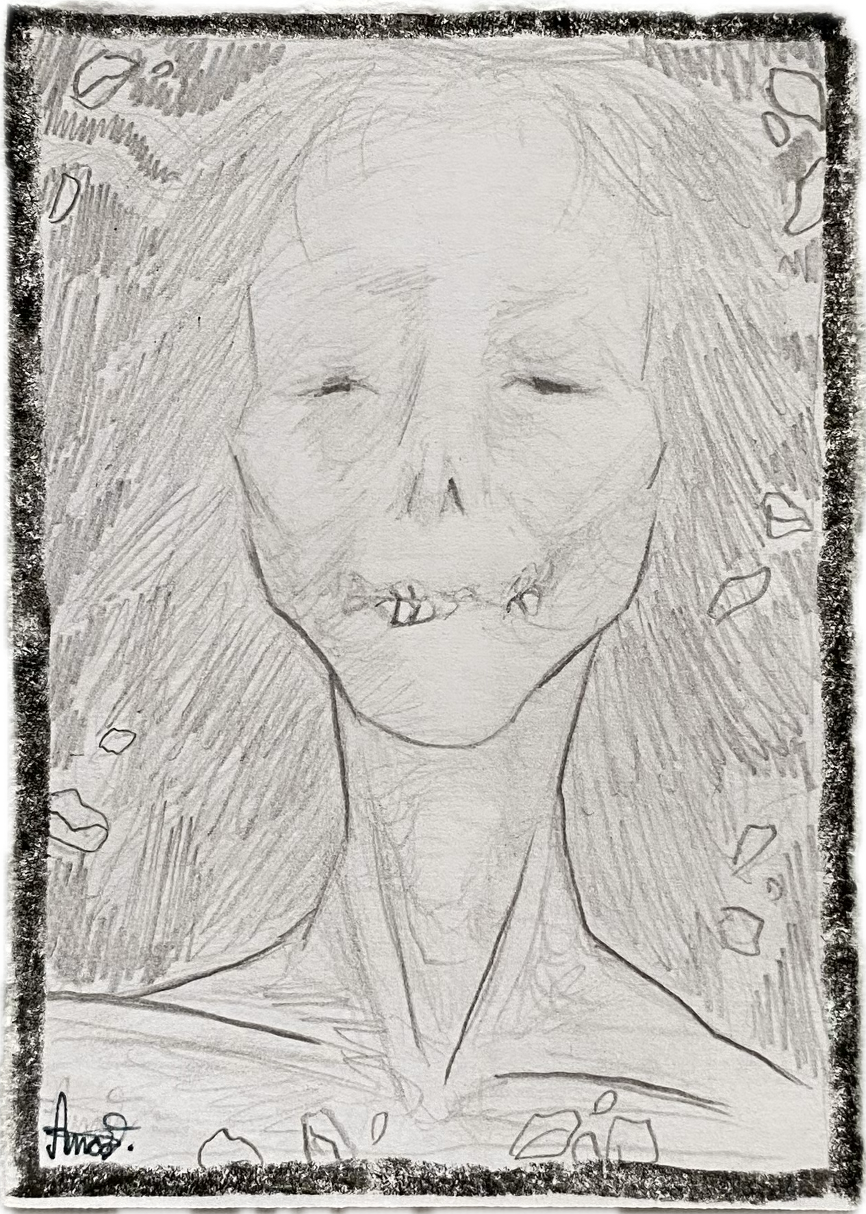It decomposed a long time ago, only a thin veil of tissue covering the small skeleton like cobwebs. The remains of a bouquet were still visible on her chest, held by the dainty bones of the hands.