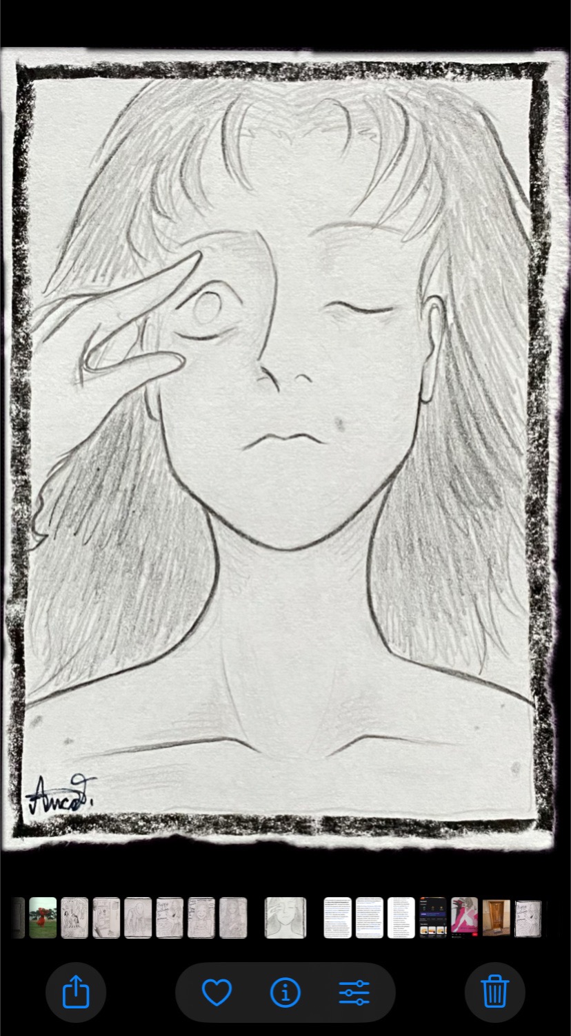 Gabriel turned on his phone's flashlight and peered down, Garofița looking with him. She moved away when she realised they were sitting with their faces almost pressed against each other. He did not seem to notice. Gabi's eyes looked cloudy, to be honest.