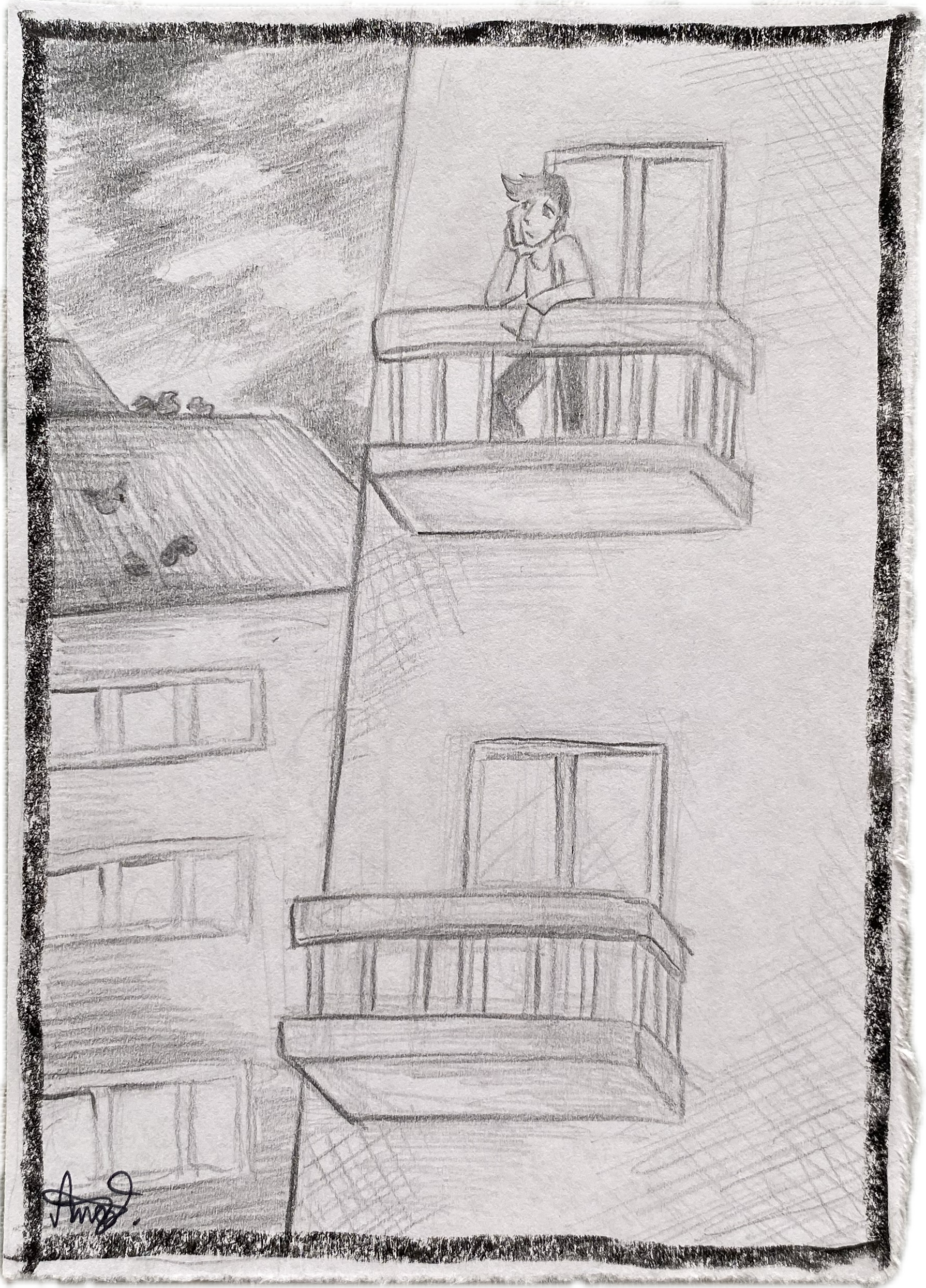The balcony barely had space for one person to stand there, but it was enough for Adrian. And the town was pretty in the evening as the sky turned orange.