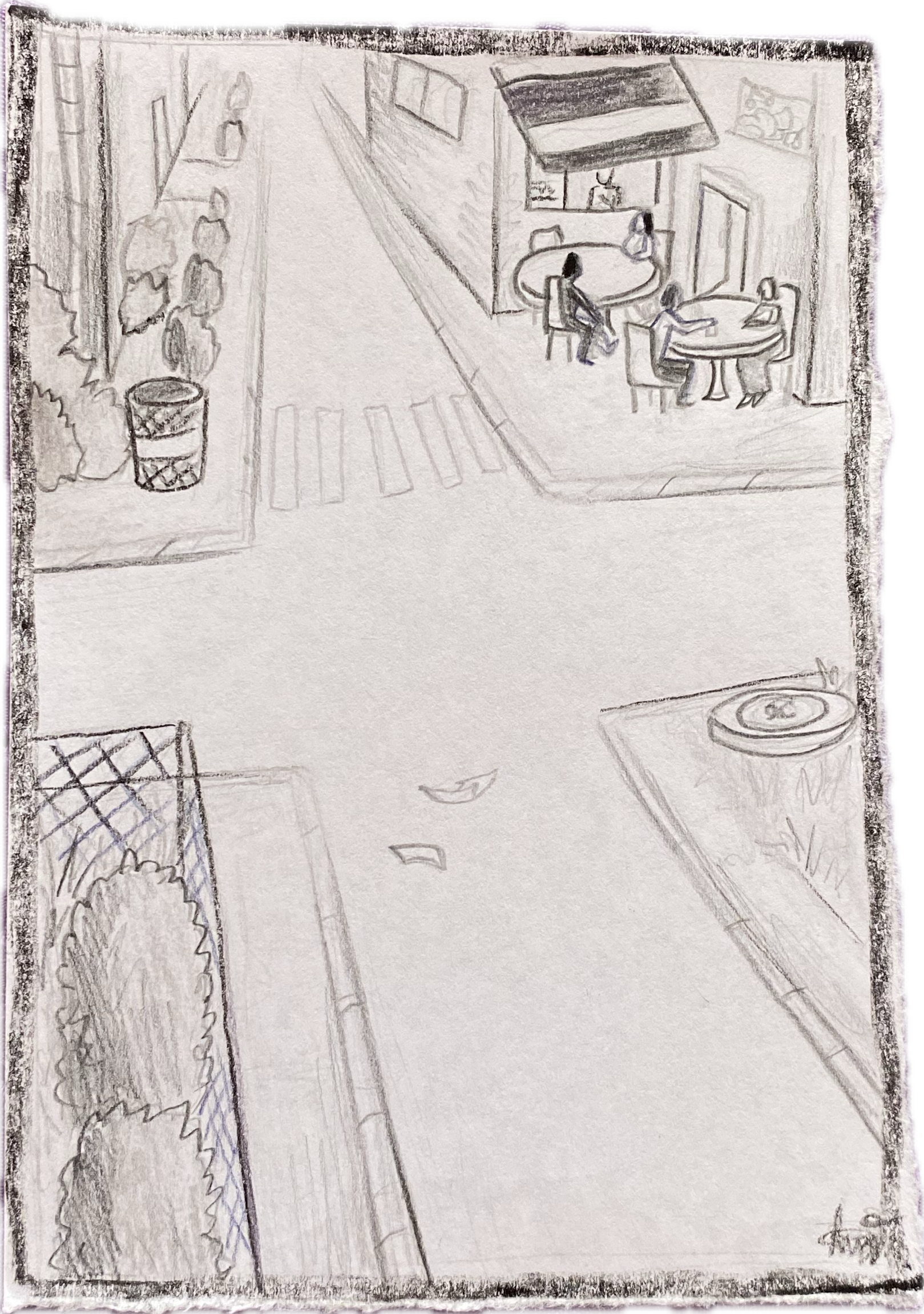As she got closer to the grocery store at the corner, she stopped skipping and assumed a proper walk. Thankfully, few people were nearby. Garofița walked straight inside.