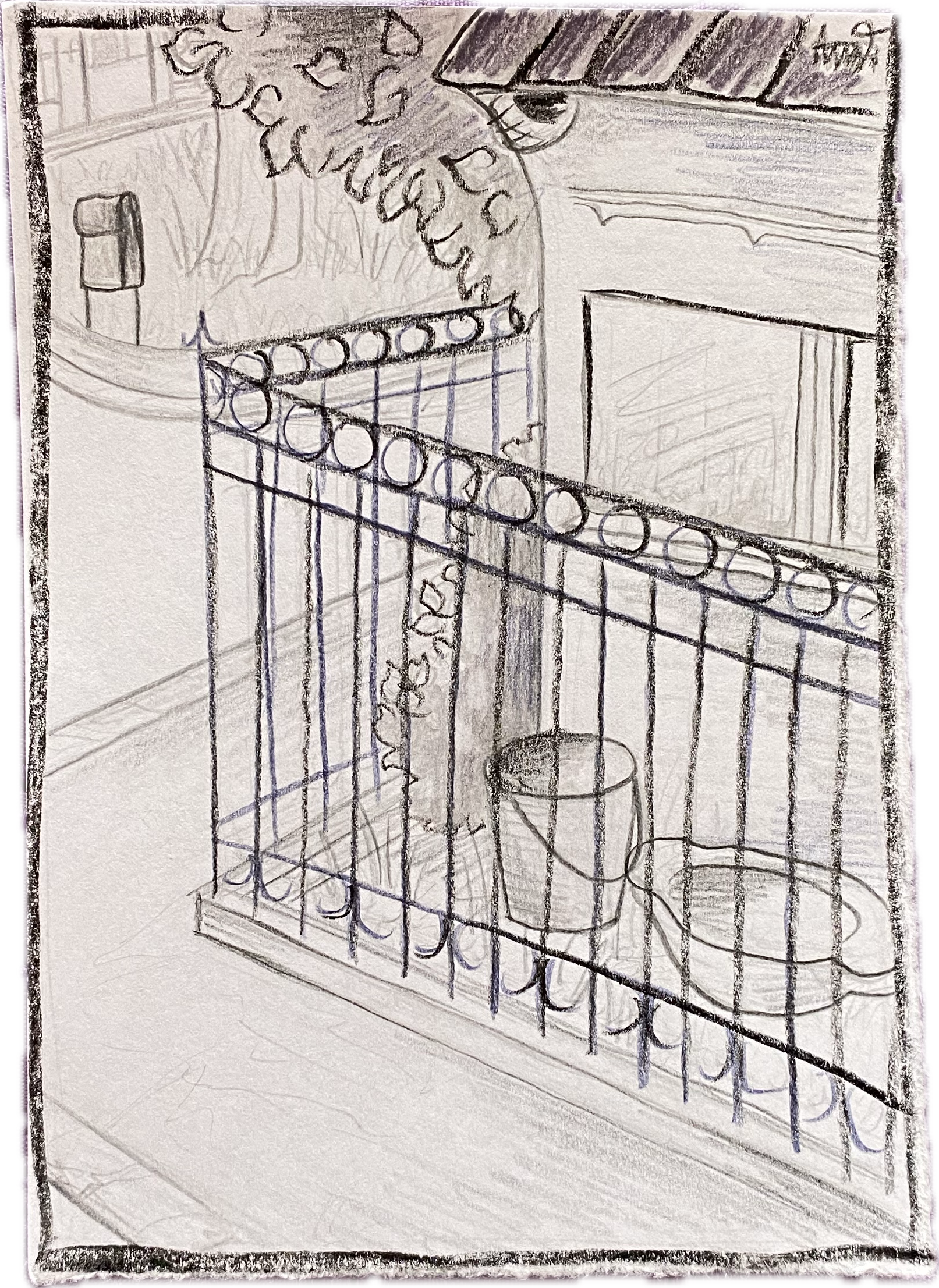 Coquette little houses with rose bushes and forged iron fences were nestled between 4-5 stories tall buildings, tenants able to peer down into their yards. White lace curtains or heavy drapes, orchid pots, sleeping cats and old people smoking could be seen from the rows of windows.